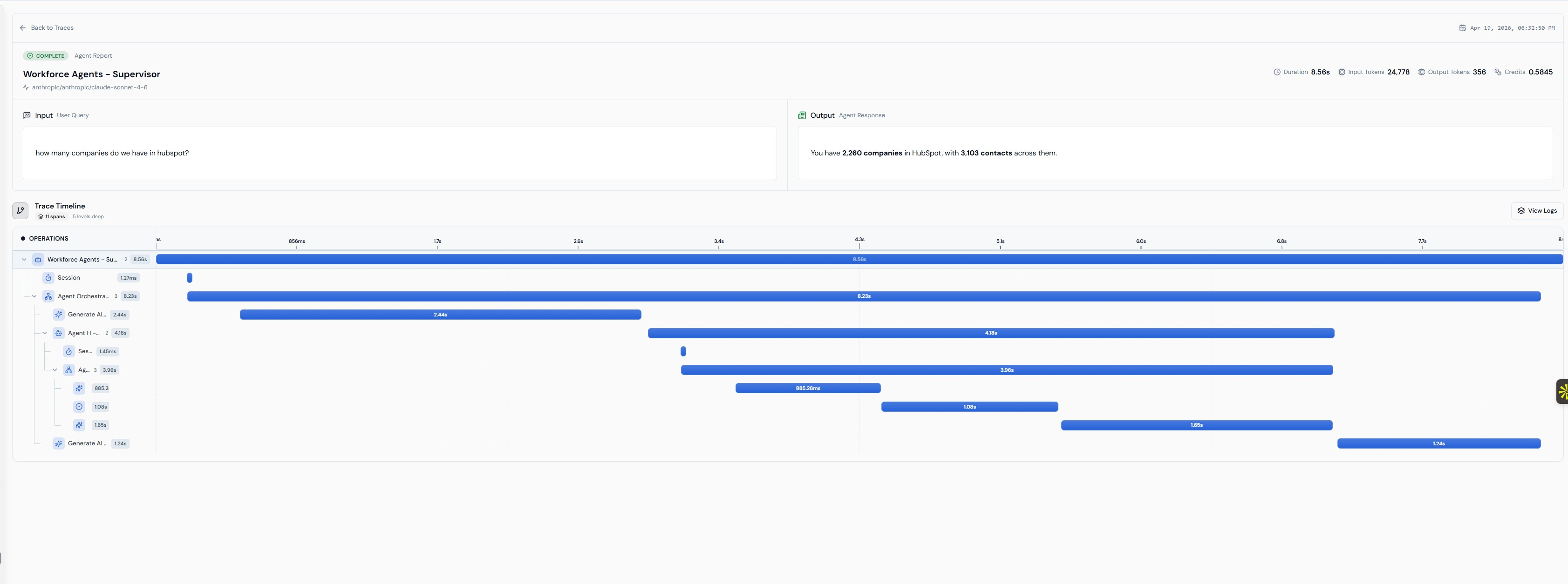 The downstream impact was immediate. When the CRM agent reported "not found" for a company that actually existed, the supervisor trusted that result. The pipeline proceeded to create a new company record, new contact records, and new email drafts — all duplicating work that was already in the system. We discovered garbled contact records in HubSpot created from masked upstream data that the pipeline had treated as real.